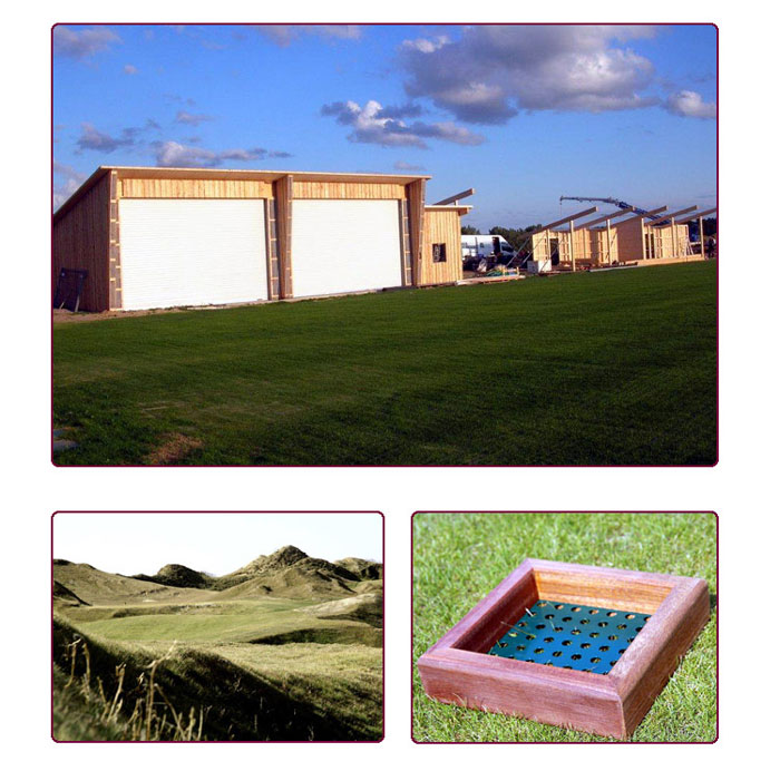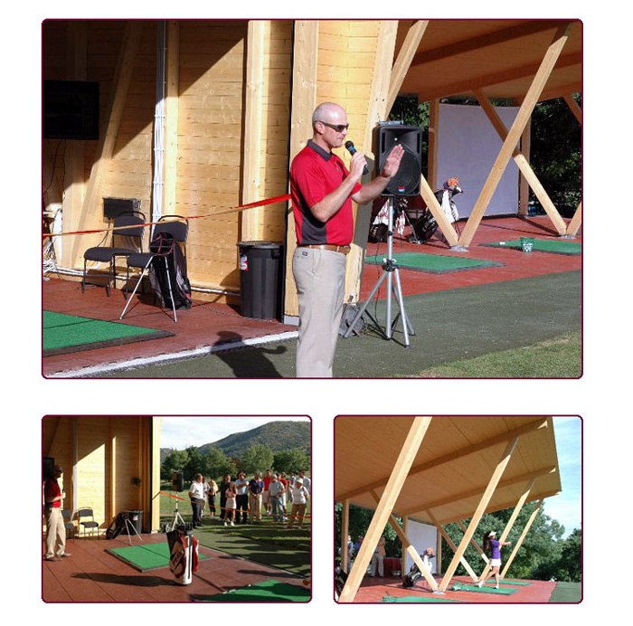 Es wurden 2 hochwertige Scopegebäude mit einem Büro, sowie 12 Abschlagboxen geschaffen. Zusätzlich wurde seitlich der Range ein Servicegebäude mit Ballgrube (Ditch) für Ballwäscher und eine automatisches Balltransportsystem geschaffen, von wo aus die Bälle über 50m zum Ballautomaten transportiert werden. Auch dieses System wurde von Golfkontor geliefert.