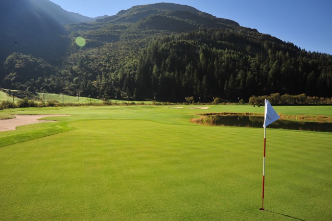 "Direkt neben dem Dorf entsteht derzeit ein ökologisch entwickelter 18-Loch-Golfplatz, der traumhaft in die spektakuläre Natur eingebettet wird. 1.3 Millionen qm gross, über 6 km lang & internationalen Turnierstandards entsprechend, wird die Anlage zu einem der attraktivsten Golfplätze in den Alpen. (...)"