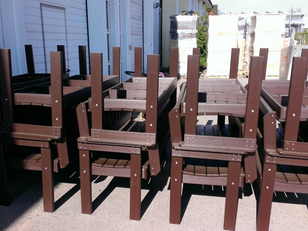 Im Vorfeld wurden diverse Designvorschläge und komplette Mustersets angefertigt; Abfallbehälter, Bänke, Schilderpfosten und Ballwascher aus hochwertigem Recyclingmaterial mit individuellen Logo-Bronzeschildern stehen nun in zwei Farb- varianten auf beiden Plätzen.